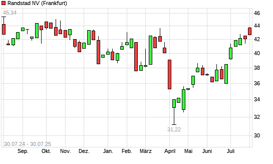 Mit dem Anstieg auf 43,79 EUR hat die Randstad-Aktie (ISIN NL0000379121) am 29.07.2025 ein neues 6-Monats-Hoch erreicht und damit den Kurs vom 28.07.2025 eingestellt.