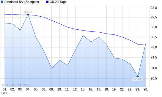 Mit dem Anstieg auf 32,16 EUR hat die Randstad-Aktie am 30.12.2025 die 20-Tage-Linie nach oben gekreuzt.