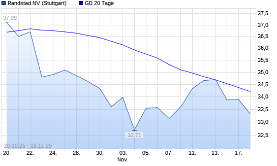 Mit dem Rücksetzer auf 34,00 EUR hat die Randstad-Aktie am 17.11.2025 die 20-Tage-Linie nach unten gekreuzt.