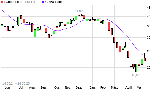Mit dem Anstieg auf 24,20 EUR hat die Rapid7-Aktie am 13.05.2025 die 50-Tage-Linie nach oben gekreuzt.