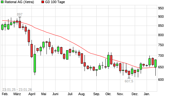 Mit dem Anstieg auf 667,50 EUR hat die Rational-Aktie am 22.01.2026 die 100-Tage-Linie nach oben gekreuzt.