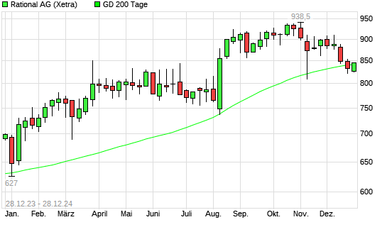 Mit dem Anstieg auf 842,00 EUR hat die Rational-Aktie am 27.12.2024 die 200-Tage-Linie nach oben gekreuzt.