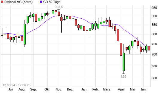 Mit dem Rücksetzer auf 727,00 EUR hat die Rational-Aktie am 11.06.2025 die 50-Tage-Linie nach unten gekreuzt.