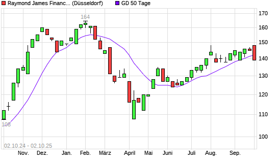 Mit dem Rücksetzer auf 142,00 EUR hat die Raymond James Financial-Aktie am 01.10.2025 die 50-Tage-Linie nach unten gekreuzt.