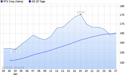 Mit dem Rücksetzer auf 163,38 EUR hat die Raytheon Technologies-Aktie am 26.01.2026 die 20-Tage-Linie nach unten gekreuzt.