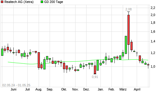 Mit dem Anstieg auf 1,09 EUR hat die Realtech-Aktie am 30.04.2025 die 200-Tage-Linie nach oben gekreuzt.