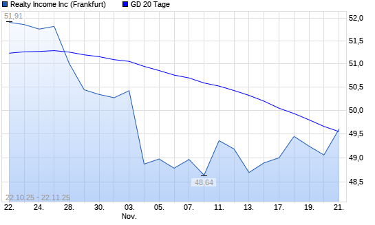 Mit dem Anstieg auf 49,60 EUR hat die Realty Income-Aktie am 21.11.2025 die 20-Tage-Linie nach oben gekreuzt.
