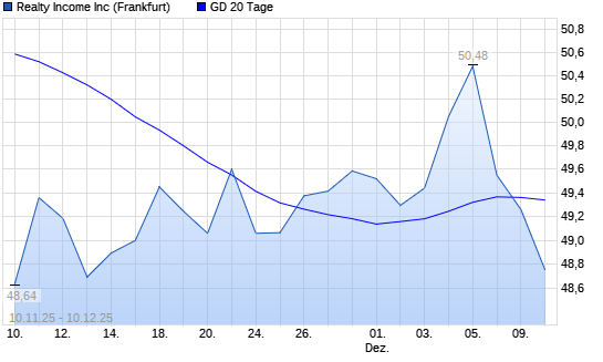 Mit dem Rücksetzer auf 49,26 EUR hat die Realty Income-Aktie am 09.12.2025 die 20-Tage-Linie nach unten gekreuzt.