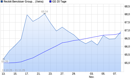 Mit dem Anstieg auf 67,02 EUR hat die Reckitt Benckiser-Aktie am 10.11.2025 die 20-Tage-Linie nach oben gekreuzt.