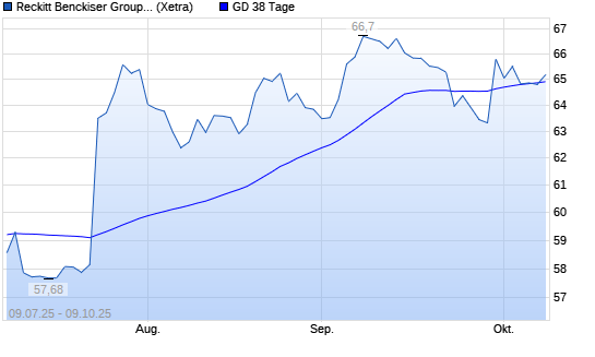 Mit dem Anstieg auf 64,94 EUR hat die Reckitt Benckiser-Aktie am 08.10.2025 die 38-Tage-Linie nach oben gekreuzt.