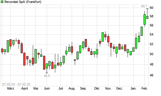 Mit dem Anstieg auf 59,55 EUR hat die Recordati-Aktie (ISIN IT0003828271) am 06.02.2025 ein neues All-Time-High erreicht und damit den Kurs vom 05.02.2025 eingestellt.