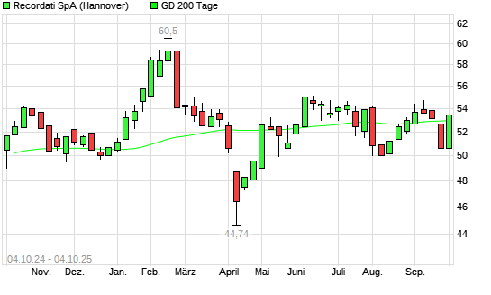 Mit dem Anstieg auf 53,05 EUR hat die Recordati-Aktie am 03.10.2025 die 200-Tage-Linie nach oben gekreuzt.