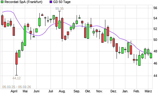 Mit dem Anstieg auf 47,82 EUR hat die Recordati-Aktie am 04.03.2026 die 50-Tage-Linie nach oben gekreuzt.