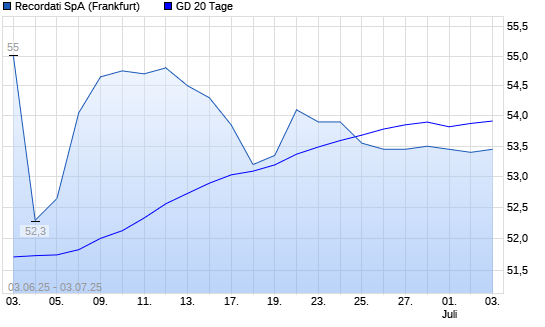 Mit dem Rücksetzer auf 53,40 EUR hat die Recordati-Aktie am 02.07.2025 die 20-Tage-Linie nach unten gekreuzt.