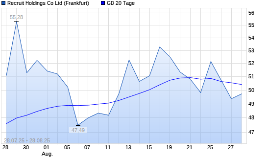 Mit dem Rücksetzer auf 49,91 EUR hat die Recruit Holdings-Aktie am 27.08.2025 die 20-Tage-Linie nach unten gekreuzt.