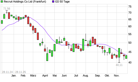 Mit dem Rücksetzer auf 43,92 EUR hat die Recruit Holdings-Aktie am 27.11.2025 die 50-Tage-Linie nach unten gekreuzt.