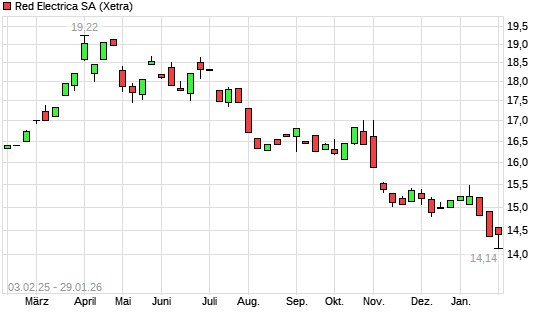 Mit dem Rücksetzer auf 14,26 EUR hat die Red Eléctrica-Aktie (ISIN ES0173093024) am 28.01.2026 ein neues 3-Jahres-Tief erreicht und damit den Kurs vom 27.01.2026 eingestellt.