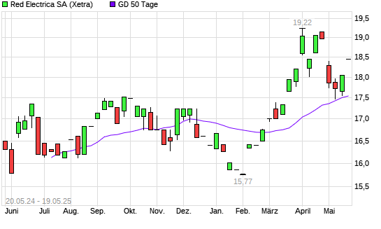 Mit dem Anstieg auf 18,31 EUR hat die Red Eléctrica-Aktie am 19.05.2025 die 50-Tage-Linie nach oben gekreuzt.