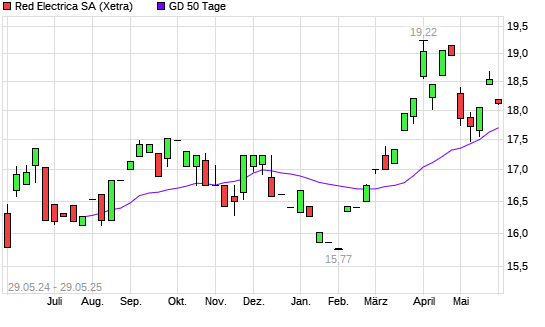 Mit dem Rücksetzer auf 18,26 EUR hat die Red Eléctrica-Aktie am 28.05.2025 die 50-Tage-Linie nach unten gekreuzt.