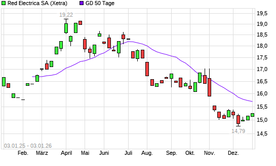 Mit dem Anstieg auf 15,28 EUR hat die Red Eléctrica-Aktie am 02.01.2026 die 50-Tage-Linie nach oben gekreuzt.Die Red Eléctrica-Aktie befindet sich seit dem 25.07.2025 ...weiterlesen