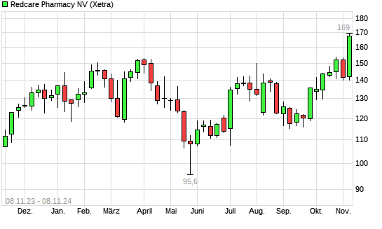 Mit dem Anstieg auf 152,90 EUR hat die Redcare Pharmacy (ex Shop Apotheke)-Aktie (ISIN NL0012044747) am 07.11.2024 ein neues 12-Monats-Hoch erreicht und damit den Kurs vom 28.03.2024 eingestellt.