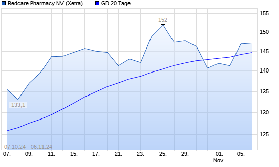 Mit dem Anstieg auf 145,90 EUR hat die Redcare Pharmacy (ex Shop Apotheke)-Aktie am 05.11.2024 die 20-Tage-Linie nach oben gekreuzt.