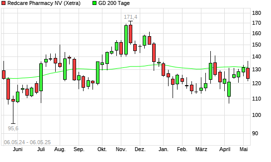 Mit dem Anstieg auf 136,20 EUR hat die Redcare Pharmacy (ex Shop Apotheke)-Aktie am 05.05.2025 die 200-Tage-Linie nach oben gekreuzt.