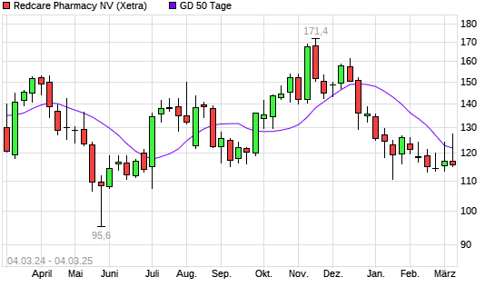 Mit dem Anstieg auf 123,10 EUR hat die Redcare Pharmacy (ex Shop Apotheke)-Aktie am 03.03.2025 die 50-Tage-Linie nach oben gekreuzt.