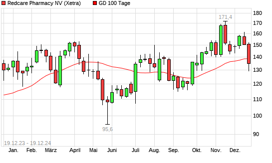 Mit dem Rücksetzer auf 136,90 EUR hat die Redcare Pharmacy (ex Shop Apotheke)-Aktie am 18.12.2024 die 100-Tage-Linie nach unten gekreuzt.