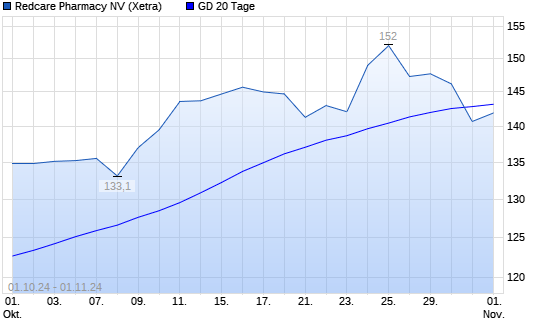 Mit dem Rücksetzer auf 140,50 EUR hat die Redcare Pharmacy (ex Shop Apotheke)-Aktie am 31.10.2024 die 20-Tage-Linie nach unten gekreuzt.