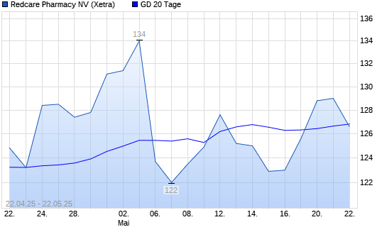 Mit dem Rücksetzer auf 126,30 EUR hat die Redcare Pharmacy (ex Shop Apotheke)-Aktie am 21.05.2025 die 20-Tage-Linie nach unten gekreuzt.