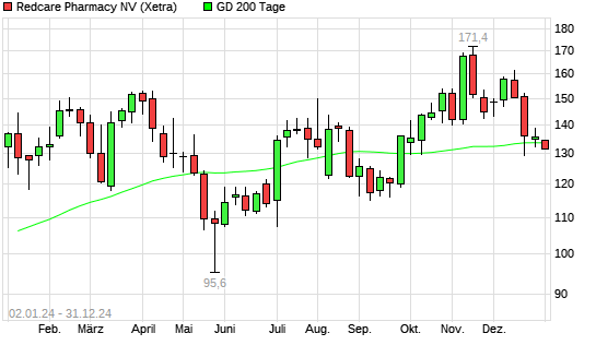 Mit dem Rücksetzer auf 132,70 EUR hat die Redcare Pharmacy (ex Shop Apotheke)-Aktie am 30.12.2024 die 200-Tage-Linie nach unten gekreuzt.