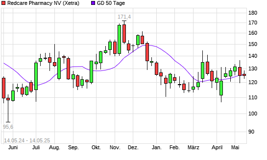 Mit dem Rücksetzer auf 125,00 EUR hat die Redcare Pharmacy (ex Shop Apotheke)-Aktie am 13.05.2025 die 50-Tage-Linie nach unten gekreuzt.