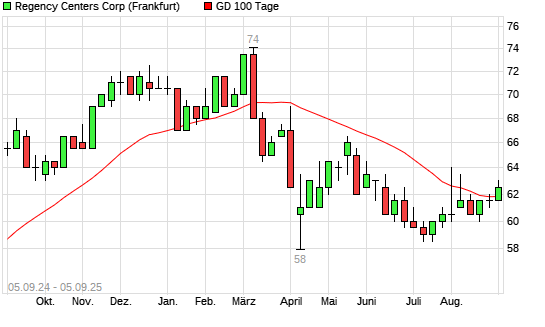 Mit dem Anstieg auf 63,00 EUR hat die Regency Centers-Aktie am 04.09.2025 die 100-Tage-Linie nach oben gekreuzt.