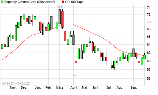 Mit dem Anstieg auf 61,50 EUR hat die Regency Centers-Aktie am 03.10.2025 die 100-Tage-Linie nach oben gekreuzt.