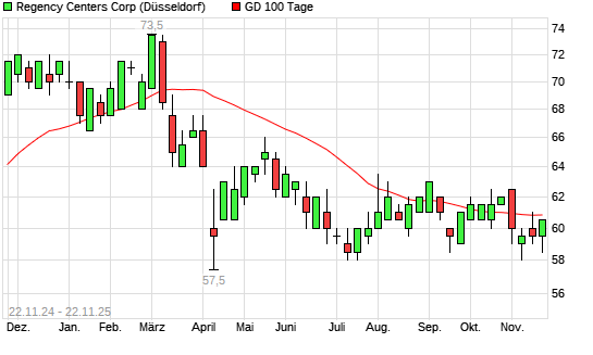Mit dem Anstieg auf 61,50 EUR hat die Regency Centers-Aktie am 21.11.2025 die 100-Tage-Linie nach oben gekreuzt.