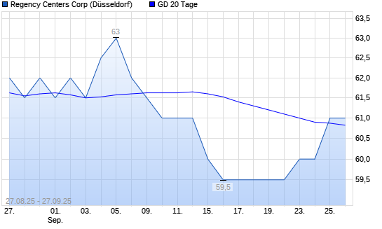 Mit dem Anstieg auf 61,00 EUR hat die Regency Centers-Aktie am 26.09.2025 die 20-Tage-Linie nach oben gekreuzt.