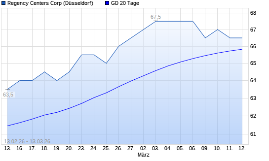 Mit dem Rücksetzer auf 66,00 EUR hat die Regency Centers-Aktie am 12.03.2026 die 20-Tage-Linie nach unten gekreuzt.