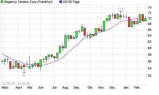 Mit dem Rücksetzer auf 69,50 EUR hat die Regency Centers-Aktie am 20.02.2025 die 50-Tage-Linie nach unten gekreuzt.