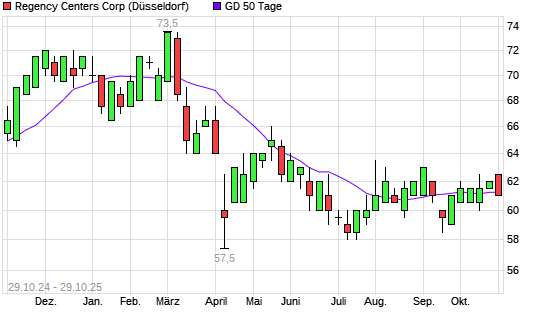 Mit dem Rücksetzer auf 61,00 EUR hat die Regency Centers-Aktie am 28.10.2025 die 50-Tage-Linie nach unten gekreuzt.