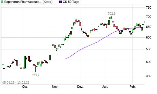 Mit dem Anstieg auf 655,20 EUR hat die Regeneron Pharmaceuticals-Aktie am 12.02.2026 die 50-Tage-Linie nach oben gekreuzt.