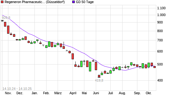 Mit dem Rücksetzer auf 485,90 EUR hat die Regeneron Pharmaceuticals-Aktie am 13.10.2025 die 50-Tage-Linie nach unten gekreuzt.