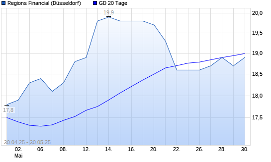 Mit dem Anstieg auf 19,20 EUR hat die Regions Financial-Aktie am 29.05.2025 die 20-Tage-Linie nach oben gekreuzt.