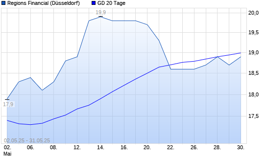 Mit dem Rücksetzer auf 19,00 EUR hat die Regions Financial-Aktie am 30.05.2025 die 20-Tage-Linie nach unten gekreuzt.
