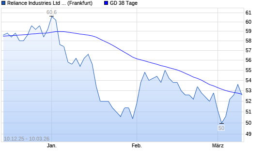Mit dem Anstieg auf 53,60 EUR hat die Reliance Industries GDR-Aktie am 09.03.2026 die 38-Tage-Linie nach oben gekreuzt.