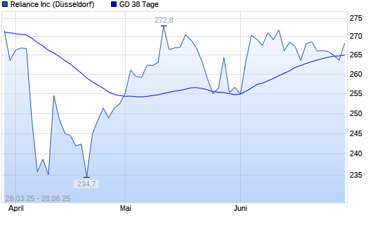 Mit dem Anstieg auf 268,40 EUR hat die Reliance Steel-Aktie am 27.06.2025 die 38-Tage-Linie nach oben gekreuzt.