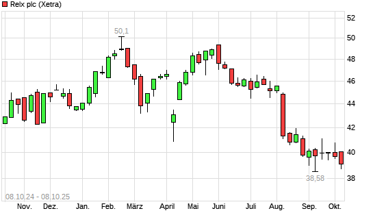 Mit dem Rücksetzer auf 38,68 EUR hat die Relx-Aktie (ISIN GB00B2B0DG97) am 07.10.2025 ein neues 12-Monats-Tief erreicht und damit den Kurs vom 02.09.2025 eingestellt.