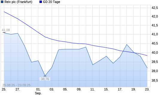 Mit dem Rücksetzer auf 39,80 EUR hat die Relx-Aktie am 22.09.2025 die 20-Tage-Linie nach unten gekreuzt.