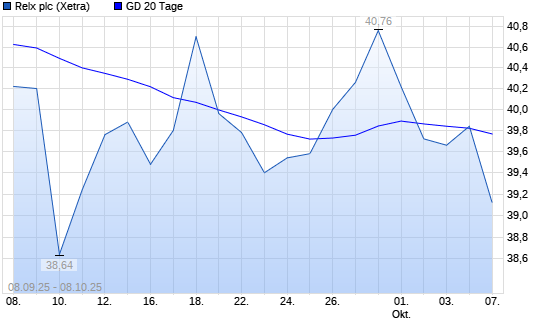 Mit dem Rücksetzer auf 38,68 EUR hat die Relx-Aktie am 07.10.2025 die 20-Tage-Linie nach unten gekreuzt.