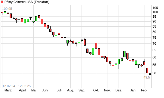 Mit dem Rücksetzer auf 49,50 EUR hat die Remy Cointreau-Aktie (ISIN FR0000130395) am 11.02.2025 ein neues 10-Jahres-Tief erreicht und damit den Kurs vom 10.02.2025 eingestellt.